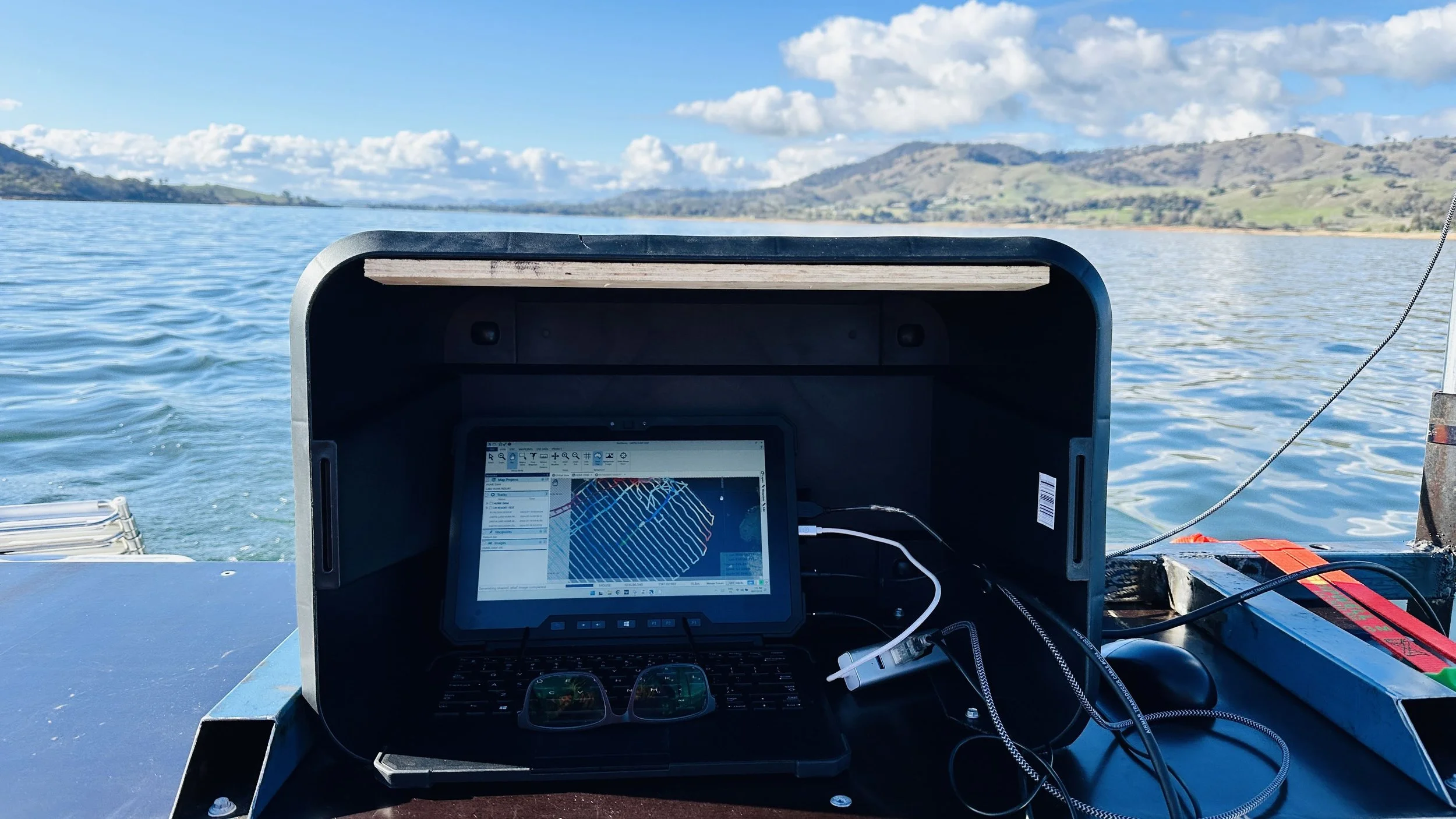 Both our remote controlled boat and a manned boat were used to capture bathymetric data across Lake Hume.